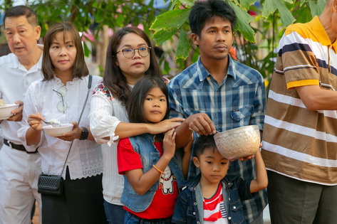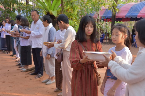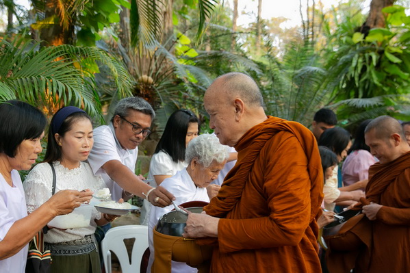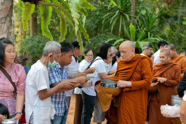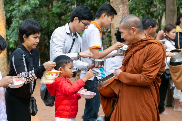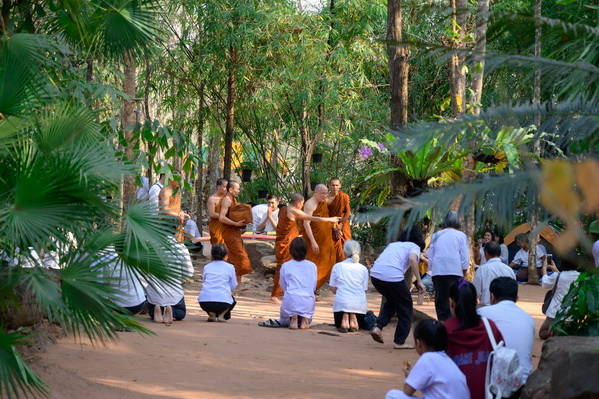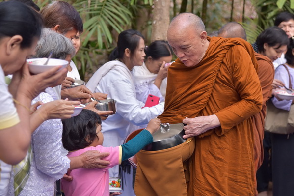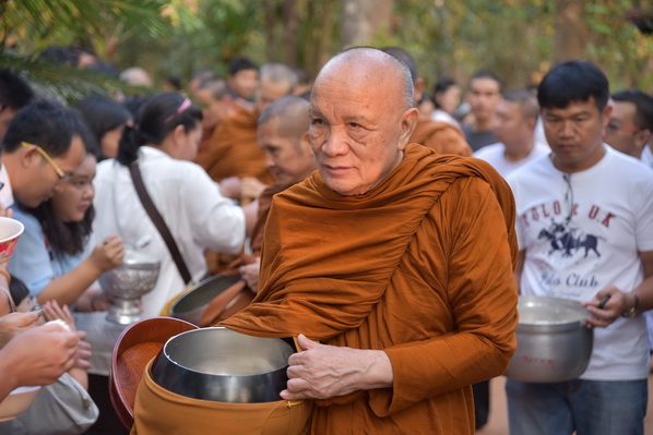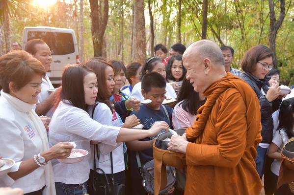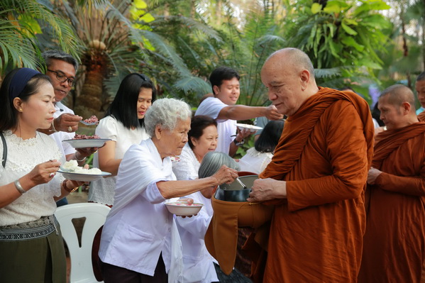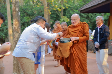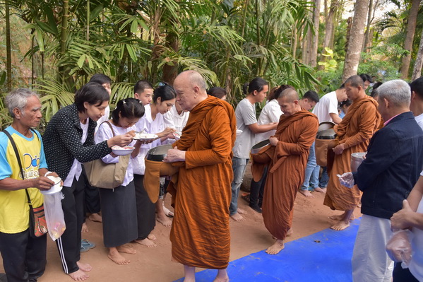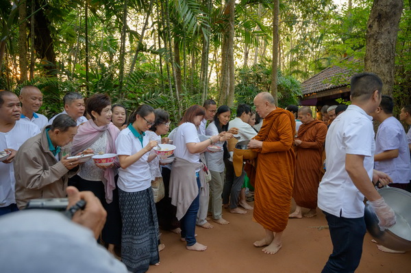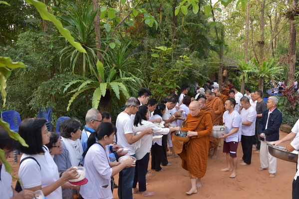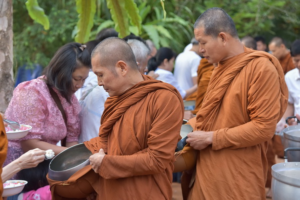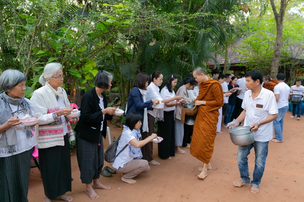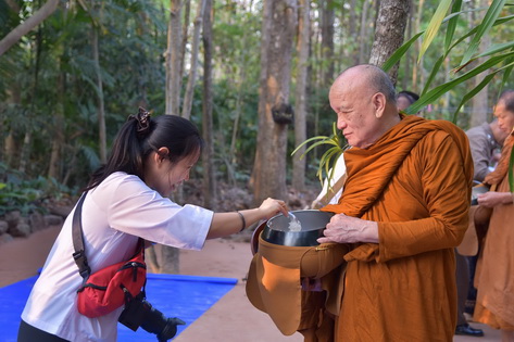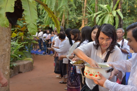 บรรยากาศในการใส่บาตรบริเวณหน้า "ศาลาปราบเซียน" วัดป่าน้ำโจน |