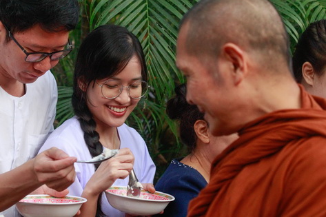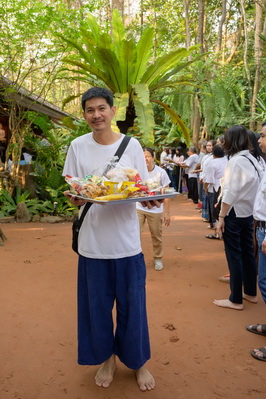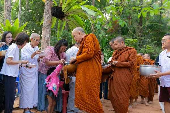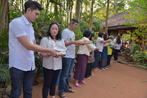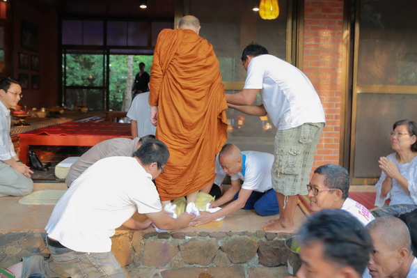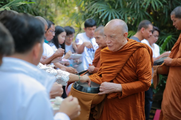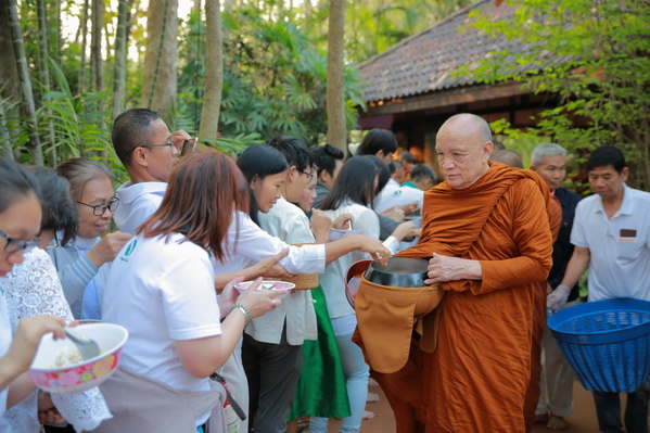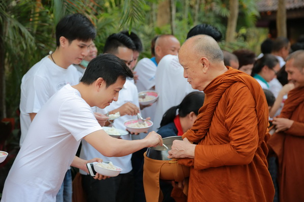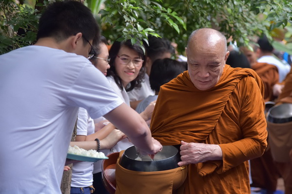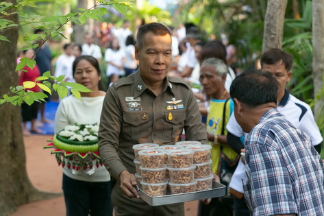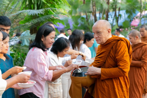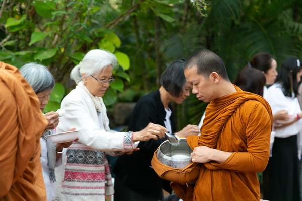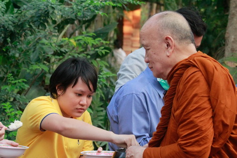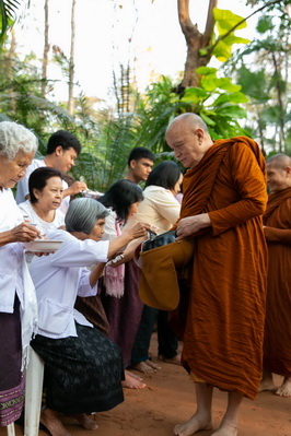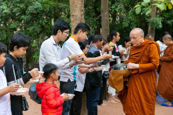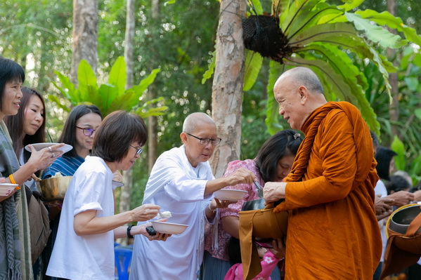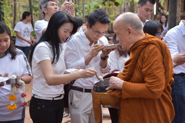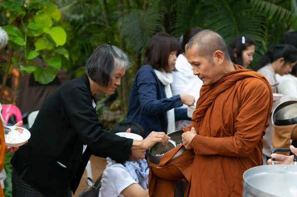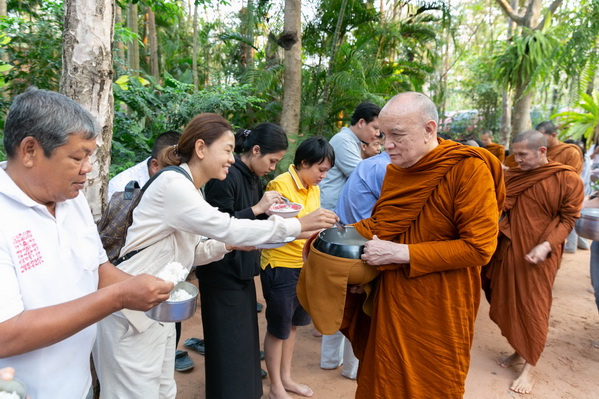บรรยากาศในการใส่บาตรบริเวณหน้า "ศาลาปราบเซียน" วัดป่าน้ำโจน |