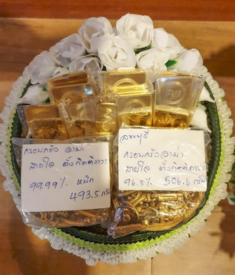 ...รวมยอดทองคำและปัจจัยที่ถวายในงานทอดผ้าป่ารวมทั้งสิ้นเป็นยอดทองคำ ๕ กิโลกรัม ๑๒ บาท ๒ สลึง, ปัจจัย ๑,๑๓๒,๑๙๘.๓๒ บาท และ