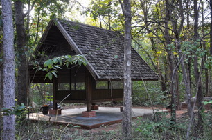 “… รุกขมูลเสนาสนัง เมื่อบวชแล้วท่านจงไปอยู่ในป่า ในเขา ในถ้ำ ในหุบ ในเหว ป่าช้ารกชัฏบ้านร้างเรือนว่าง เพื่ออาศัยสถานที่อันสงบสงัดนั้นทำที่สุดแห่งทุกข์เถิด…” “…Rukkhamulasenasana Having been ordained, a bhikkhu shoued dwell in a Forest, on the mountain, in the cave, in the valley, in the abyss, in the graveyard, in a wilderness or in a deserted house in order to stay in such a quiet place so as to make the end of suffering…”