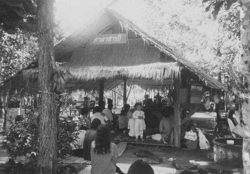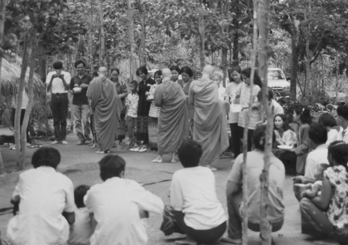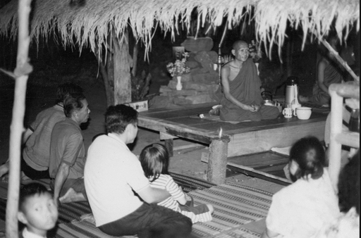 ...ญาติโยมพากันนั่งฟังธรรมรอบศาลา...